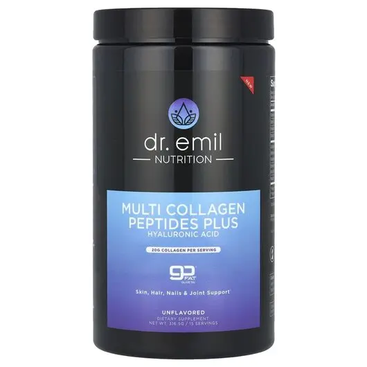 Забезпечує молодий вигляд - колагеновий порошок Dr. Emil Nutrition містить 90 мг гіалуронової кислоти на порцію, щоб забезпечити молодий вигляд, зменшити зморшки та покращити гідратацію та еластичність шкіри.