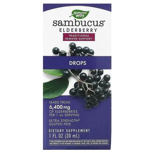 Основне фото товара Nature's Way, Sambucus Elderberry Drops, Чорна Бузина, 30 мл