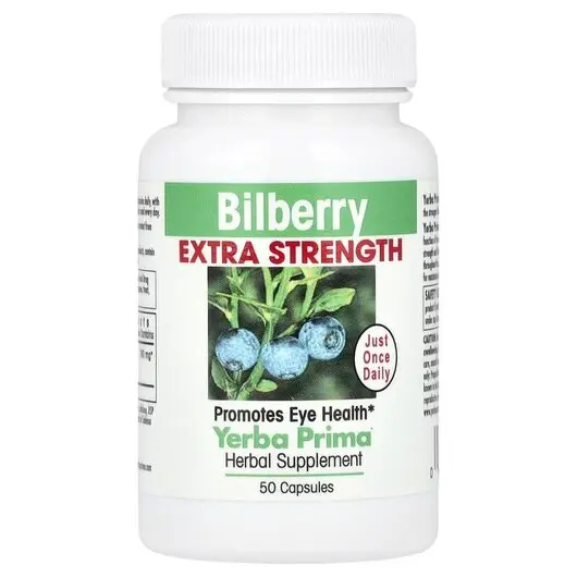 Основне фото товару Yerba Prima, Bilberry Extra Strength, Чорниця, 50 капсул