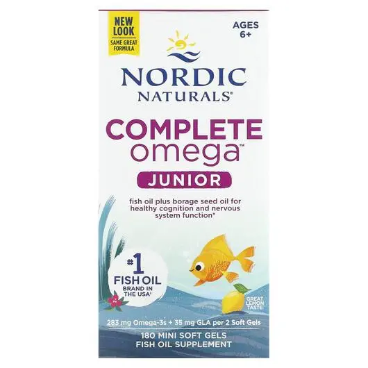 Повний комплекс Omega Junior поєднує в собі омега-3s EPA та DHA з риб'ячого жиру з GLA з олії насіння борщівника для сприяння здоровій нервній системі, що допомагає підтримувати нормальний соціальний, емоційний та поведінковий розвиток у дітей віком від 6 до 12 років. Як і всі наші продукти з риб'ячого жиру, Complete Omega Junior підтримується наукою і виготовляється від початку до кінця Nordic Naturals, щоб гарантувати безпечний, стійкий та виключно свіжий та чистий продукт.