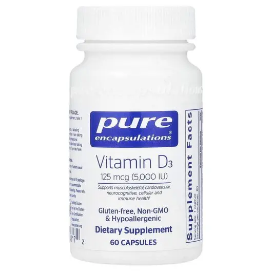 Pure Encapsulations, Vitamin D3 125 mcg 5000 IU, Вітамін D3, 60 капсул