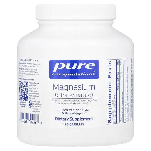 Pure Encapsulations, Magnesium Citrate/Malate, Магній, 180 капсул