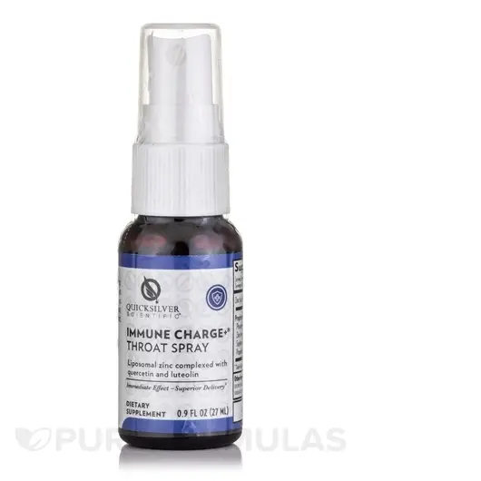 Спрей для горла Immune Charge+ Ліпосомальний цинк у комплексі з кверцетином і лютеоліном. Миттєвий ефект чудова доставка Спрей для горла Immune Charge+ — це суміш цинку та інших сильнодіючих рослинних сполук із високою біодоступністю для підтримки імунітету, розроблена для захисту вашого горла цілий рік. Швидкодіючий ліпосомальний спрей від Quicksilver Scientific поєднує незамінний мінерал цинк з кверцетином, лютеоліном і прополісом для підтримки внутрішньоклітинного рівня цинку як у горлі, так і у верхніх дихальних шляхах. Ідеальний супровід до нашого фірмового продукту Immune Charge+ цей спрей на основі цинку спеціально націлений на горло, створюючи додатковий барєр для цієї чутливої зони. Спрей для горла Immune Charge+ ідеально підходить для подорожей, неминучих сезонних впливів та цілорічного зміцнення захисту.
