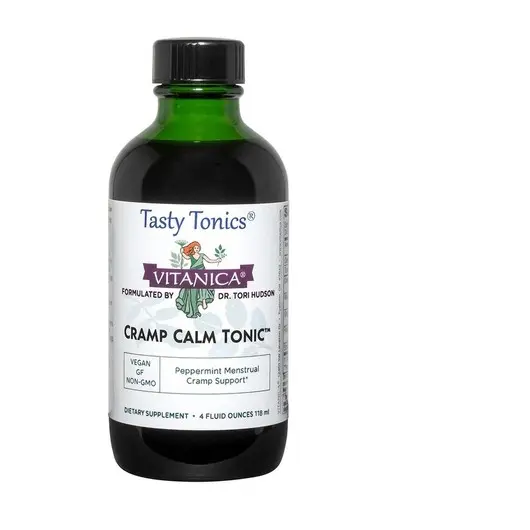 Смачні тоніки — це концентровані рідкі травяні формули, розроблені з терапевтичними дозами та змішані з натуральними ароматизаторами та ефірними оліями для чудового смаку та сприяння щоденному застосуванню. Cramp Calm Tonic це рослинна формула, яка забезпечує швидку підтримку тканин матки та гладких м'язів під час менструації або за потреби. Упаковується в красиве зелене скло. Кора від спазмів — це традиційно використовувана тонізуюча трава, яка забезпечує заспокійливу підтримку матки та гладких м'язів під час менструації Корінь валеріани також забезпечує заспокійливу підтримку матки та мязових тканин і допомагає під час звичайних менструальних спазмів Корінь імбиру підтримує та підтримує здорове запалення реакцію та підтримує заспокоєння гладкої мускулатури Трава Garrya є важливою традиційно використовуваною травою для сприяння заспокоєнню м'язів; дуже корисно під час менструації та в інший час, коли це необхідно. Підтримка гладкої мускулатури під час менструації та в інший час, коли ця заспокійлива підтримка потрібна для м'язів. Освіжаюча перцева мята охолоджує, і її можна змішати з додатковим імбиром для смаку та підтримки.