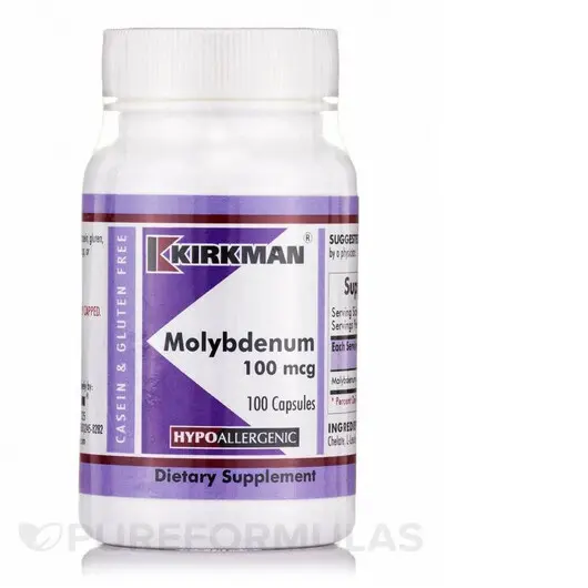 Фото використання Kirkman, Molybdenum 100 mcg Hypoallergenic, Молібден, 100 капсул