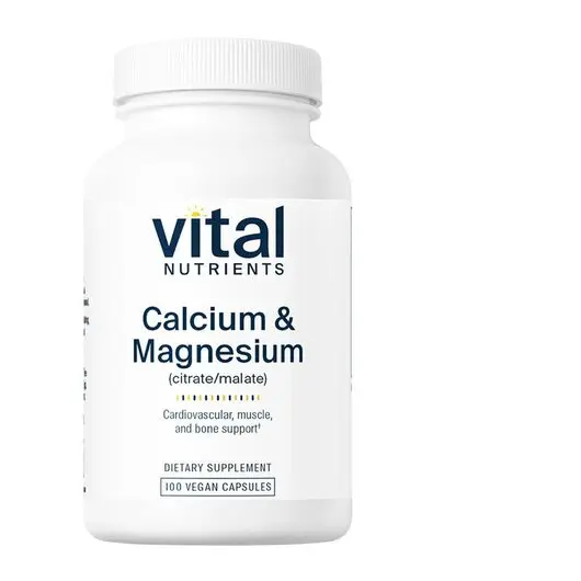 Кожна пляшка кальцію/магнію (формула цитрат/малат) на 100 капсул від Vital Nutrients має рекомендовану дозу 2 капсули, від 2 до 4 разів на день під час їжі, або за рекомендацією медичного працівника.
