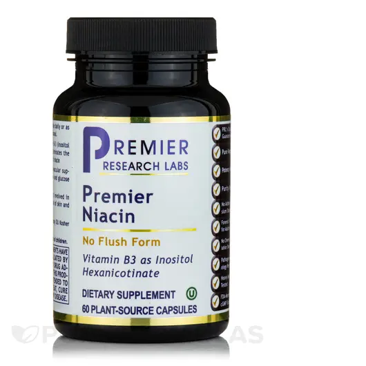Premier Niacin містить вітамін B3 у вигляді інозитолу гексанікотинату (IHN) форми ніацину, який не змивається. Вітамін B3 сприяє здоровій серцево-судинній системі та є ключовим компонентом, який бере участь у багатьох аспектах енергетичного обміну. Коферменти вітаміну В3 (НАД і НАДФ) сприяють метаболічним процесам, включаючи розщеплення та використання жирів, вуглеводів і білків. IHN також підтримує кровообіг і здорове використання підшлункової залози. Форма без промивання Сприяє здоровій підтримці серцево-судинної системи, а також кровотоку та використанню глюкози Вітамін B3 є ключовою поживною речовиною, яка бере участь в енергетичному обміні, формуванні шкіри та травних тканин