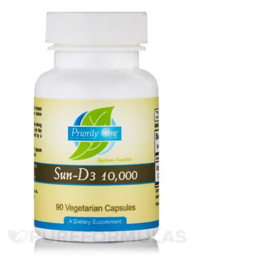 Зручний спосіб гарантувати, що ви отримуєте достатню кількість вітаміну D, — це добавка, наприклад Sun-D3 від Priority One. Це ідеально, тому що кожна капсула містить значну кількість 10000 МО вітаміну D3 який є формою вітаміну D, що надходить від природного сонячного світла.