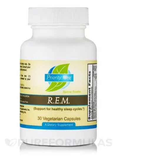 REM (Підтримка циклів здорового сну) від Priority One містить суміш трав, поживних речовин та інших інгредієнтів, які потенційно можуть допомогти підтримати гарний нічний відпочинок.