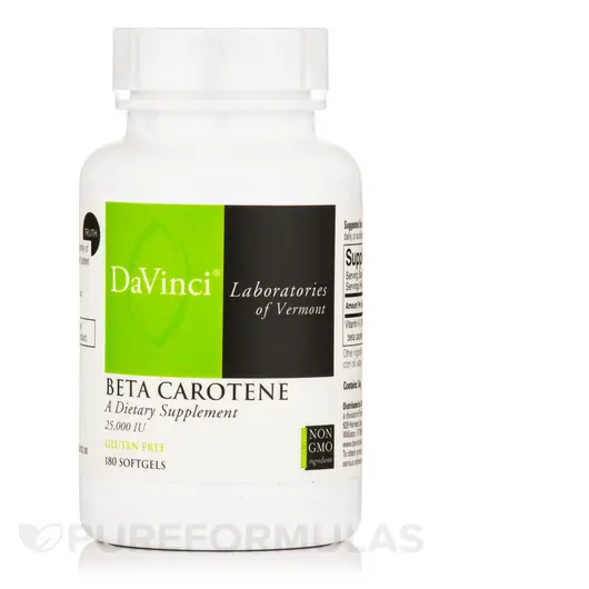 Розмір порції: 1 мяка капсула Порції в упаковці: 180 Кількість на порцію / Вітамін А (100% у вигляді бета-каротину) 25000 МО / 500% Інші інгредієнти: соєва олія, желатин, гліцерин, кукурудзяна олія, вода, жовтий бджолиний віск, соєвий лецитин. Містить сою. Без глютену / виготовлено з інгредієнтів без ГМО.