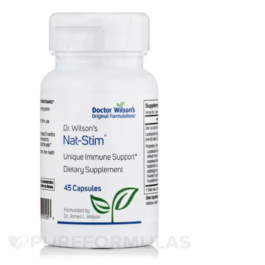 Капсули NatStim від Dr. Wilson's Original Formulations це безмолочна вегетаріанська добавка, яка може зміцнити вашу імунну систему. Ця формула містить спеціальний штам Lactobacillus bulgaricus, дружніх бактерій, які зустрічаються в здоровому кишковому тракті та пробіотичній їжі, як йогурт.