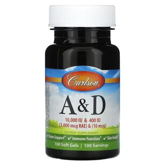 Carlson, A & D 10000 IU and 400 IU, Вітаміни A та D, 100 капсул