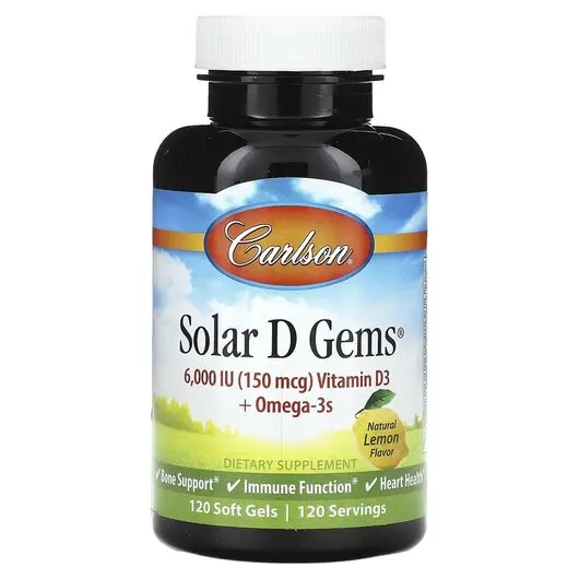 Solar D Gems 6000 IU 150 mcg Vitamin D3 + Omega-3s, Вітамін D3, 120 капсул