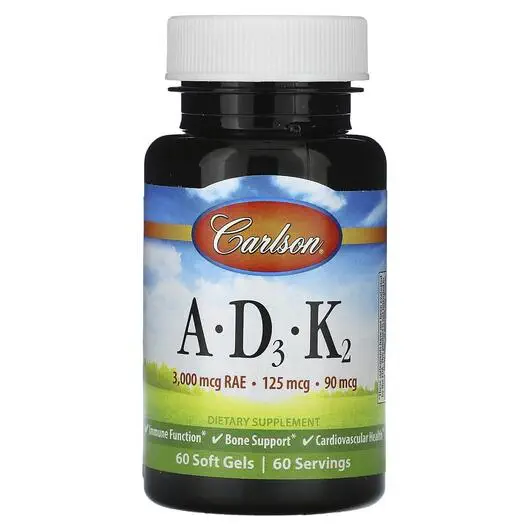 Вітаміни A, D3 і K2 працюють разом, щоб максимізувати здоров'я серцево-судинної системи та імунітету, побудову кісток і використання кальцію.