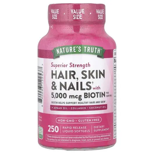 Нехай ваша природна краса засяє завдяки поживній підтримці Nature's Truth Hair, Skin, Nails! Ці рідкі мякі капсули швидкого вивільнення пропонують комплексну мультивітамінну підтримку, щоб зберегти ваше волосся, шкіру та нігті у найкращому стані.