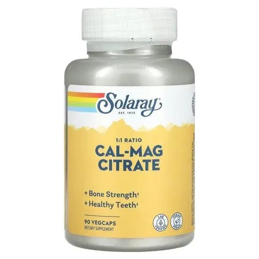 Solaray, Cal-Mag Citrate 1:1 Ratio, Кальцій Магній, 90 капсул