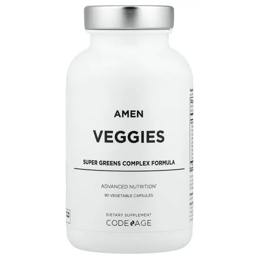 Amen Veggies пропонує суміш темно-зелених сирих овочів, грибних порошків і травяних екстрактів для сучасного джерела цільних овочів, зелені щоденних овочів, вітамінів, клітковини, фітонутрієнтів і мінералів у зручному форматі капсул.