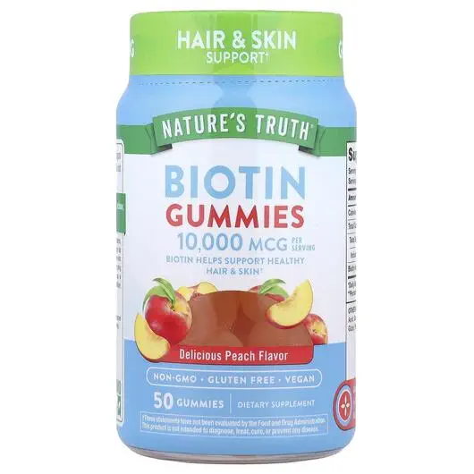 Nature's Truth, Biotin Natural Peach 10000 mcg, ПЕА, 50 таблеток