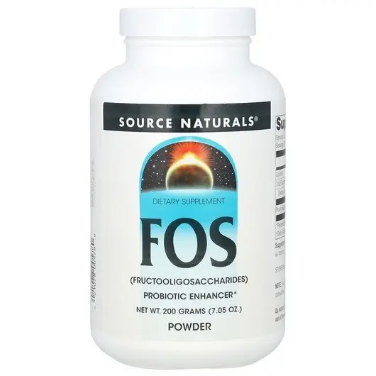 Source Naturals FOS — це комплекс фруктоолігосахаридів (FOS) — групи природних вуглеводів, які можуть сприяти зростанню корисної флори в шлунково-кишковому тракті. Організм нормально підтримує баланс «дружньої» флори в кишківнику; на жаль, такі чинники, як неправильне харчування, стрес, проблеми з шлунково-кишковим трактом і прийом антибіотиків, можуть порушити цей крихкий баланс. FOS — це цукри з довгим ланцюгом, які не засвоюються людиною, але служать «їжею» для дружньої флори, допомагаючи збільшити їх кількість в організмі. Наукові дослідження, проведені в Японії, показали, що FOS вибірково використовуються дружньою флорою, такою як біфідобактерії та лактобактерії.