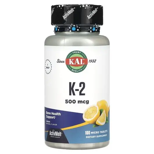 Фото товару KAL, K-2 Lemon 500 mcg, Вітамін K2, 100 таблеток