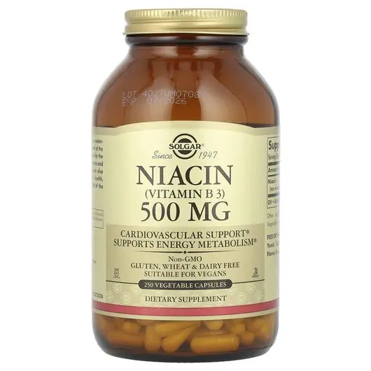Ніацин (вітамін B3) є водорозчинним вітаміном і входить до складу комплексу B. Він необхідний для метаболізму вуглеводів і білка в енергію. Ніацин також підтримує здоров'я серцево-судинної системи, кровообіг і здоров'я нервової системи.