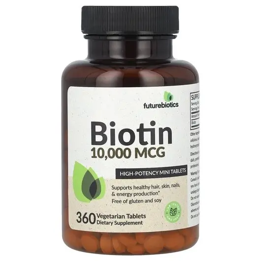 Futurebiotics Biotin містить потужні 10 000 мкг біотину на міні-таблетку. Надаючи 10 000 мкг на міні-таблетку, Futurebiotics Biotin забезпечує цінне щоденне поповнення, яке підтримує здоров'я волосся, шкіри, нігтів і вироблення енергії. Лабораторно протестований і не містить ГМО, глютену та сої, наш біотин 10 000 MCG перевірено в компанії всередині та виготовлено навченими фахівцями на нашому сучасному підприємстві, яке розташоване в Хауппауге, Нью-Йорк. Futurebiotics Biotin 10 000 MCG підходить для веганів/вегетаріанців і не містить компонентів тваринного походження.