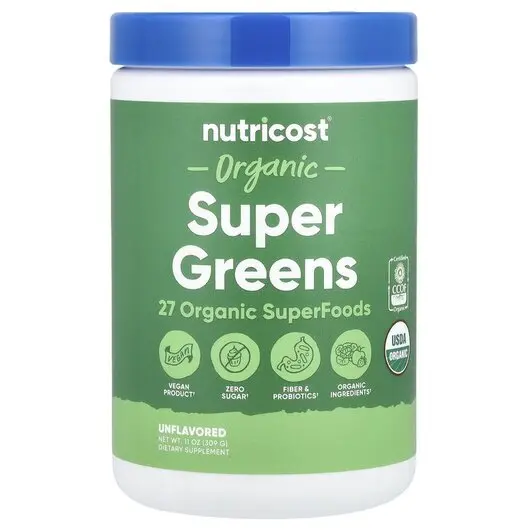Nutricost, Organic Super Greens Unflavored, Супергрінс, 309 г