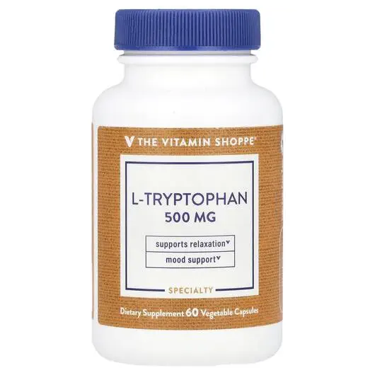 Овочеві капсули бренду Vitamin Shoppe L-триптофан містять 500 мг цієї амінокислоти, що сприяє відчуттю спокою та задоволення.