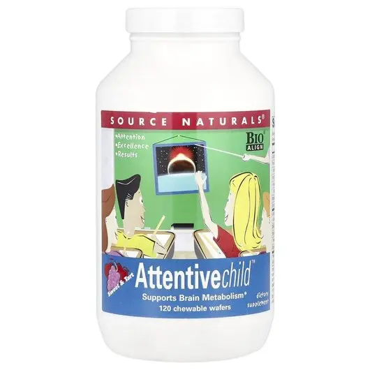Дослідження показали, що дуже активні діти можуть мати особливі харчові потреби. Source Naturals ATTENTIVE CHILD розроблено для підтримки багатьох систем, які впливають на метаболізм мозку вашої дитини, а діти люблять солодкий і терпкий смак! DMAE, речовина, яка зазвичай міститься в мозку, може використовуватися організмом для виробництва холіну, який, у свою чергу, може використовуватися для виробництва ацетилхоліну. Магній необхідний для багатьох метаболічних процесів, а також відіграє важливу роль у нервово-м’язовій передачі та діяльності. L-аспартат, амінокислота, діє як нейромедіатор. Наш екстракт виноградних кісточок містить проціанідини, які мають потужну антиоксидантну дію, а фосфатидилсерин є життєво важливим компонентом клітинних мембран, у тому числі в головному мозку.