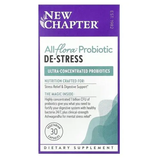 Фото товару New Chapter, All-Flora Probiotic De-Stress, Пробіотики, 30 капсул