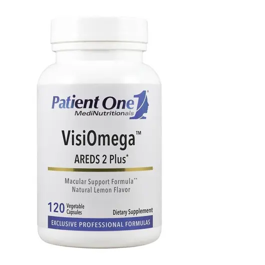 VisiOmega від Patient One MediNutritionals — це комплексна науково обґрунтована формула, розроблена для захисту здоров'я макули ока та тонких фоторецепторних клітин, одночасно оптимізуючи ефективність зору та комфорт очей. VisiOmega базується на ретельно відкаліброваній основі антиоксидантів для очей, вивчених урядом США, і додатково підтримує здоров'я очей за допомогою риб’ячого жиру Омега-3 і запатентованої суміші антиоксидантів для очей.
