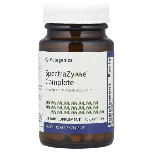 SpectraZyme Complete забезпечує підтримку травлення завдяки широкому спектру ферментів нетваринного походження без ГМО, включаючи стабільну кислоту ліпазу та три протеази, які діють у різних діапазонах pH. Цей комплексний ферментний комплекс розроблений для підтримки здорового травлення білків, пептидів, вуглеводів, жирів, целюлози, мальтози, лактози та сахарози.
