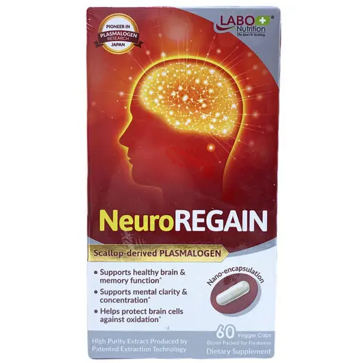 Вступ до LABO NeuroREGAIN LABO NeuroREGAIN — це високоефективна дієтична добавка, що сприяє підтримці функцій мозку природним шляхом. Вона побудована на унікальній науково підтвердженій формулі, яка містить плазмалоген, отриманий з морських гребінців, що природним чином пов'язаний з DHA (докозагексаєновою кислотою). Це поєднання працює синергічно, покращуючи здоров'я мозку та когнітивні функції.
