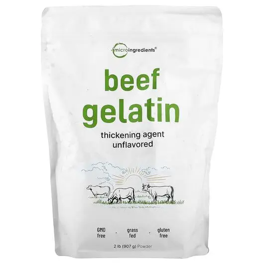 Micro Ingredients пропонує оптом 2 фунти порошку яловичого желатину вищого сорту, великої рогатої худоби, вирощеної на травах і пасовищах, натуральний загусник без смаку, чудово підходить для будь-яких рецептів приготування їжі чи випічки.