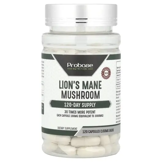 Lion's Mane Mushroom 100 mg, Гриби Левова Грива, 120 капсул