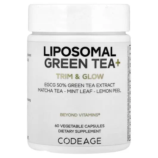 - Добавка Codeage Liposomal Green Tea+ містить екстракт зеленого чаю, стандартизований до 50% EGCG і 98% поліфенолів для концентрованого профілю.