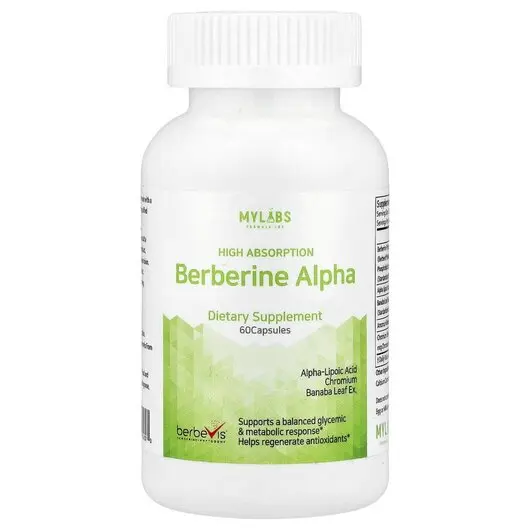 Основне фото товару Mylabs, Berberine Alpha High Absorption, Берберин, 60 капсул