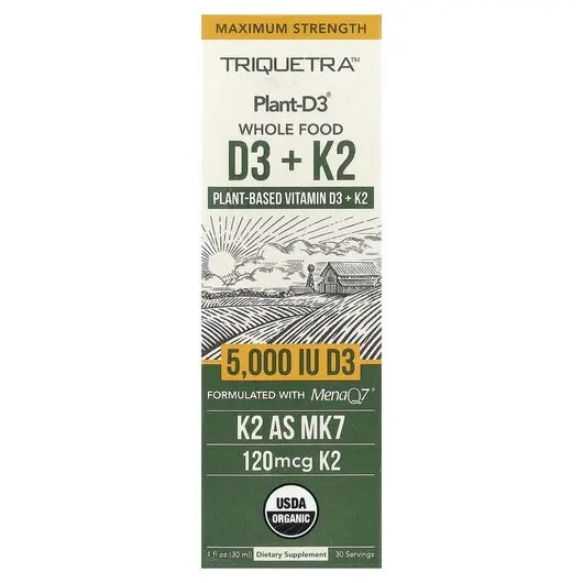 Plant-D3 Whole Food D3+ K2 Maximum Strength, Вітаміни D3 K2, 30 мл