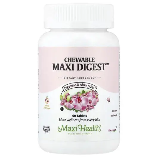 Фото товару Chewable Maxi Digest Natural Fruit Flavor, Ферменти, 90 таблеток