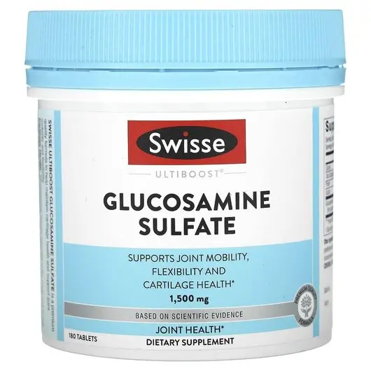 Переваги: Swisse Ultiboost Glucosamine Sulfate - це високоякісна формула, яка допомагає підтримувати здоров'я хряща та підтримує рухливість і гнучкість суглобів.