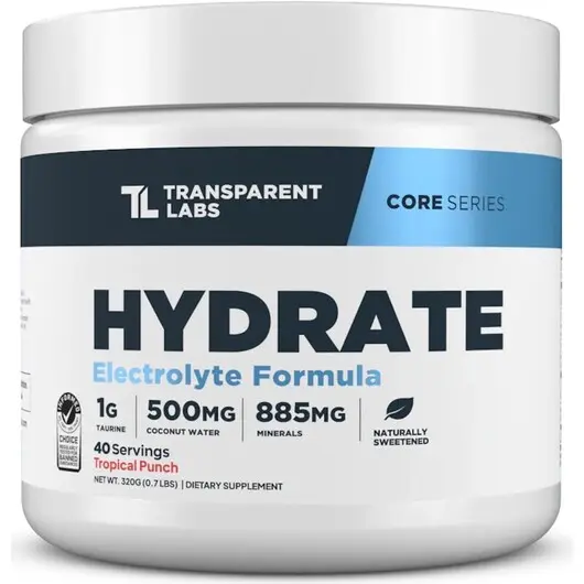 Transparent Labs Hydrate — високоякісний спортивний електролітний порошок, що допомагає швидко відновити водно-мінеральний баланс, підтримати продуктивність під навантаженням і сприяти відновленню після фізичної активності. Він містить комплекс важливих електролітів, адаптогенів і амінокислот для всебічної підтримки організму у стані фізичного навантаження та щоденної активності.