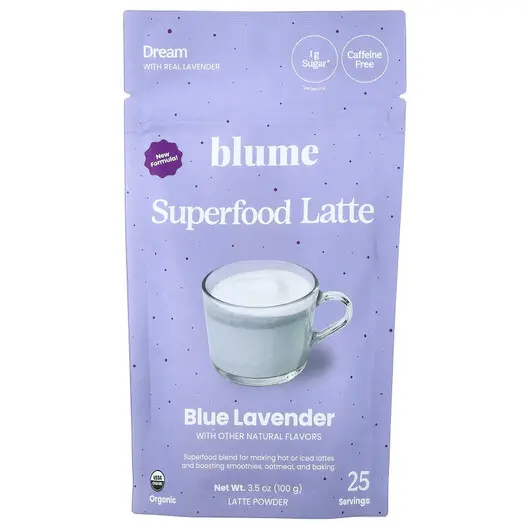 Blume, Superfood Latte Blue Lavender Caffeine Free, Кофеїн, 100 г