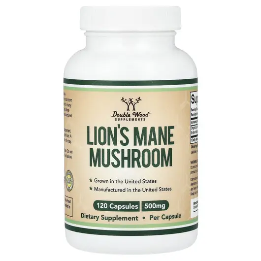 Lion's Mane Mushroom 500 mg, Гриби Левова Грива, 120 капсул
