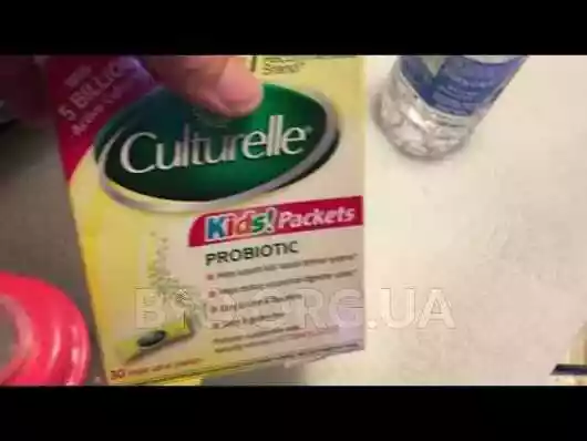 Зберігання: Зберігайте Culturelle у прохолодному сухому місці, подалі від прямих сонячних променів. Очевидний тампер: Продукт опечатування пакетами. Не використовуйте, якщо будь-яка частина пакету розірвана, відкрита або пошкоджена. Під час першого приймання Culturelle у вашої дитини може виникнути незначне здуття живота, газоутворення або булькання кишківника, які повинні припинитися при тривалому застосуванні. Зверніться до лікаря, якщо симптоми не пропадуть через дві тижні.